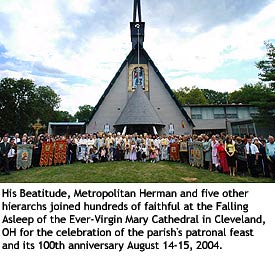 Hundreds of faithful gathered at the Falling Asleep of the Ever-Virgin Mary Cathedral here for the celebration of the parish’s patronal feast and its 100th anniversary Saturday and Sunday, August 14-15, 2004.